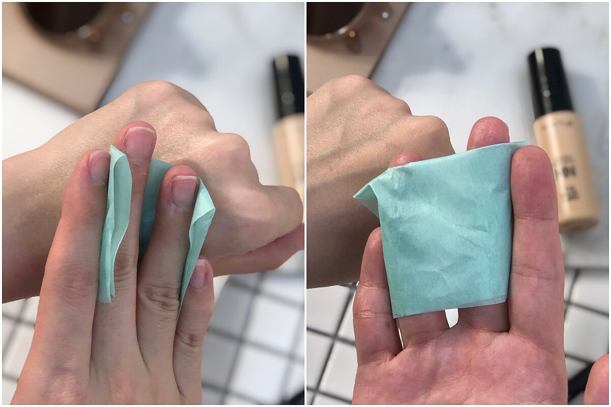 除了強效隔離紫外線與對抗髒空氣,清爽質地絕對是零瑕肌密高效防曬隔離霜的重點之一,在使用隔離霜後,以吸油面紙測試,沒有太多殘留的隔離霜,且清爽不厚重。