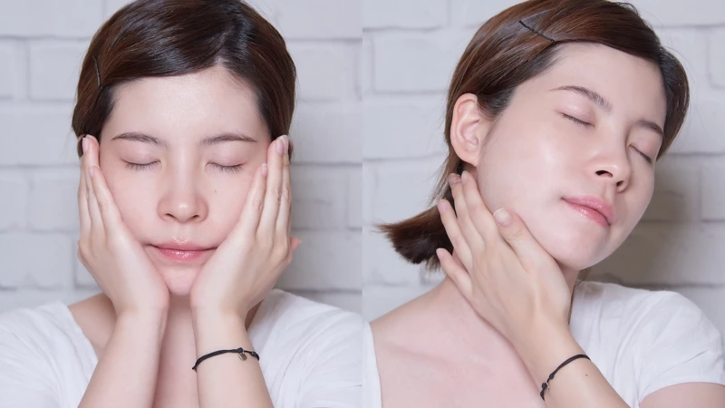 Stpe2:手掌置於顴骨雙頰,按壓後放鬆,重複三次