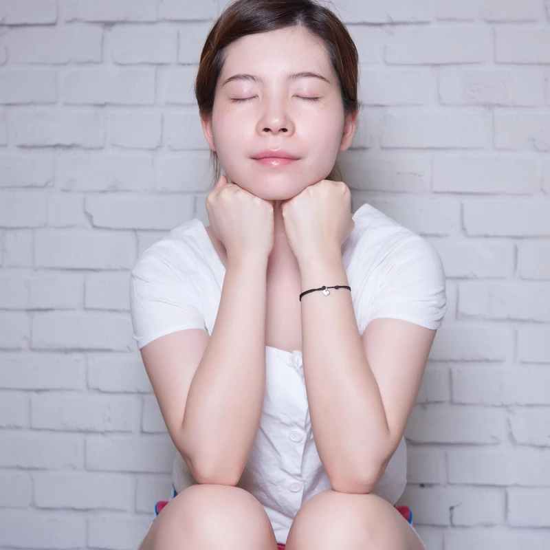 Step5:將拳頭放置於下巴下方,加強排水,順便消消肥下巴