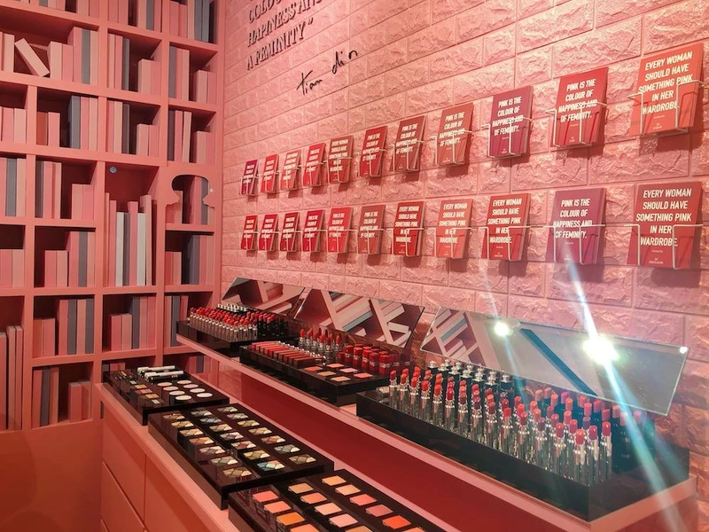 打造成霓虹閃爍的音樂廳,佈置滿滿的DIOR唇膏、彩妝,此站任務:愛上粉紅搖滾,盡情放閃玩妝