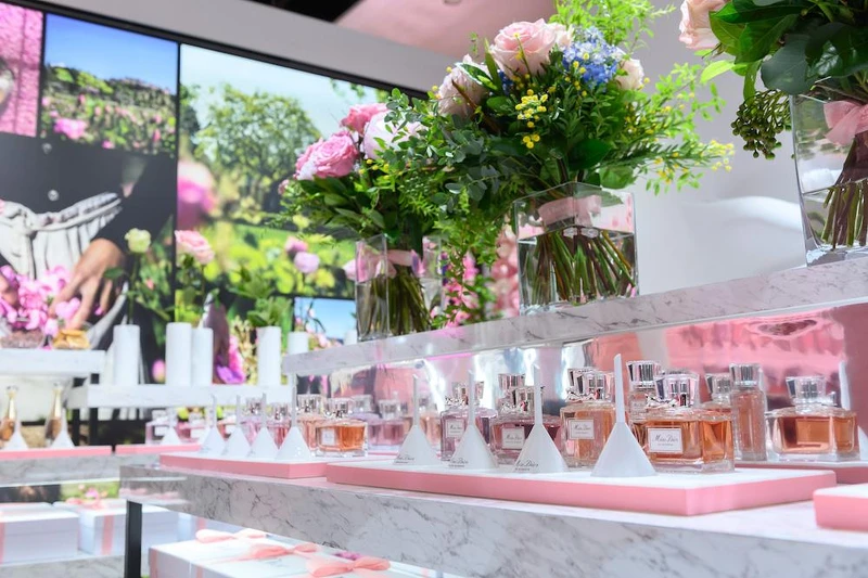 打造成粉色花坊,佈滿迷人的盛開玫瑰花,宛如來到巴黎蒙田大道,在這裡能一次體驗DIOR的美麗香氛,此站任務:訂製專屬香氛,令他心醉神迷。
