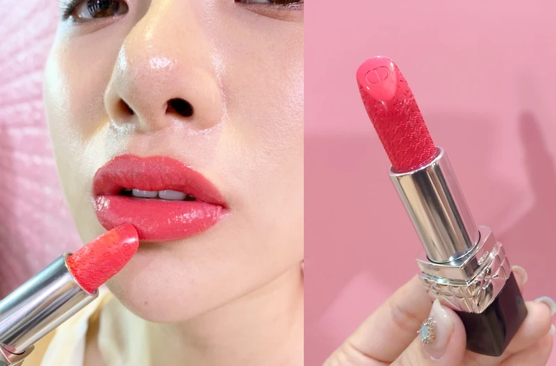 限量脣膏刻印著精緻繁複的千鳥格紋,搭配桃氣玫瑰色彩;