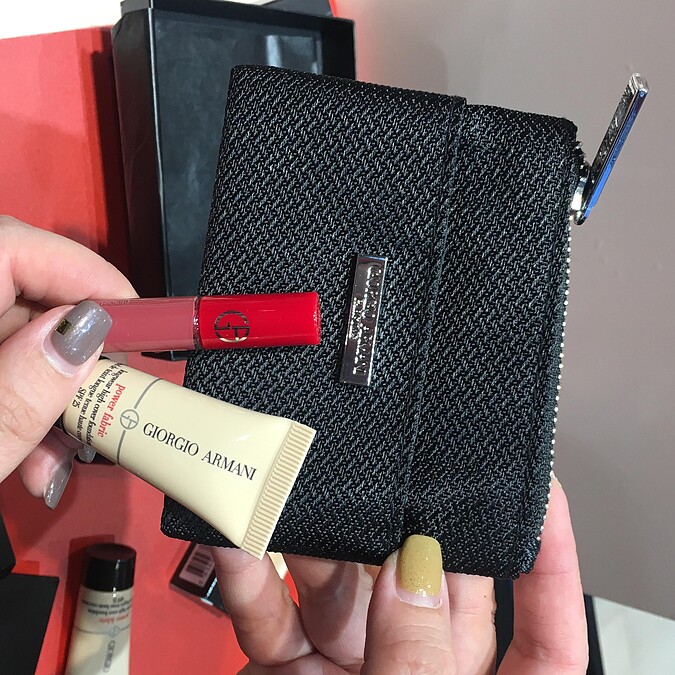 活動(2):8/1-8/31,凡購買亞曼尼彩妝類產品滿額 NT6,000,即可獲贈「亞曼尼時尚完美妝容精巧禮」(內含:亞曼尼時尚精巧零錢包+完美絲絨水慕斯粉底5ml+奢華絲絨訂製唇萃#501精巧版)。每人限贈一次,贈完為止。