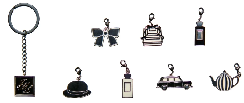 凡消費滿NT8,000,即可獲得1組,內含:鑰匙圈1個+任選吊飾2個,吊飾包括:Jo Malone London經典蝴蝶結、英式午茶、Jo Malone London禮物塔、鴿子、Jo Malone London古龍水、Jo Malone London芳醇古龍水、英式禮車、英式禮帽等8款最具英式精髓的樣式。