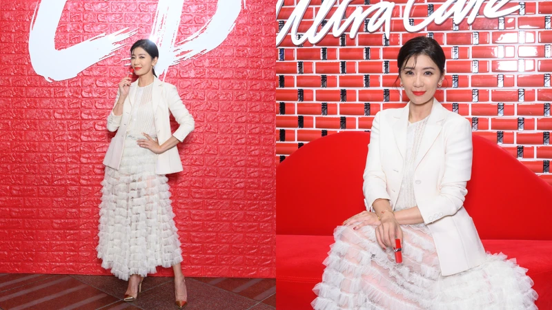 剛入圍金鐘獎最佳女主角的超惹火女神賈靜雯,以俐落的白色西裝外套搭配白色紗裙,並且選用了迪奧超惹火絲絨唇露#846 Poppy,展現女性自信美。她大方分享了自己的妝容技巧:平日沒有工作時,就算是淡妝或是素顏,她還是會上裸粉色唇膏,就像是她非常喜歡的迪奧超惹火絲絨唇露#655 Dream,因為這種溫柔百搭的玫瑰粉色調,即使素顏,一擦上就能馬上提亮氣色!