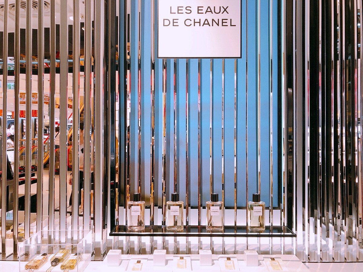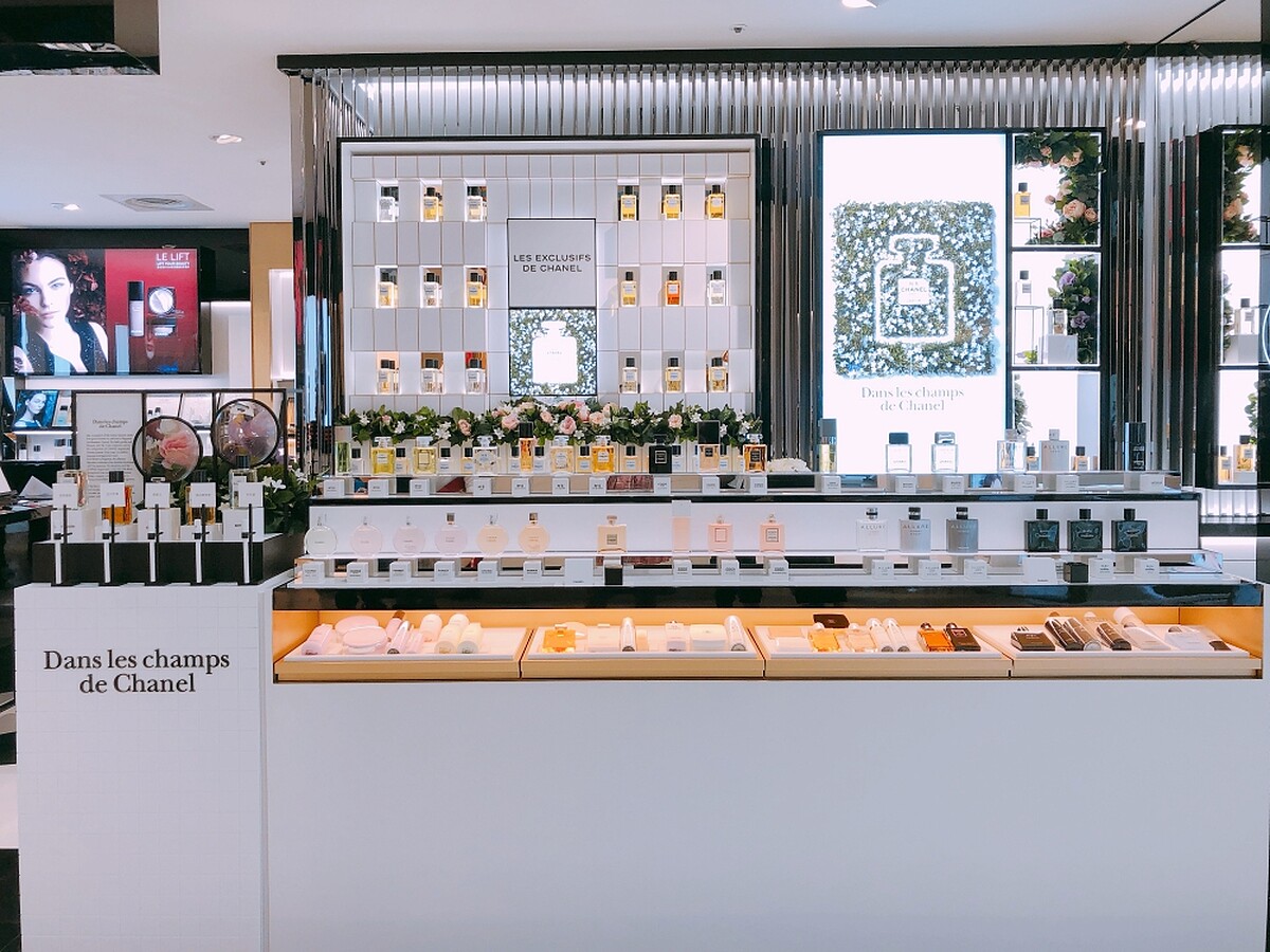 主打香氛陳列新裝,因此一眼望去佔了整個香奈兒專櫃近一半空間的就是香氛區。一字排開陳列出所有香奈兒的香水,看起來極為壯觀。這是香奈兒從法國引進的新店型,讓大家更能自在地聞香、試香。
