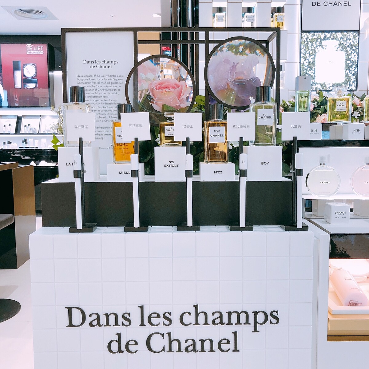 ↑主題展示區,會定期更換主題,目前展出以「香氛花園」為概念的香奈兒香水。