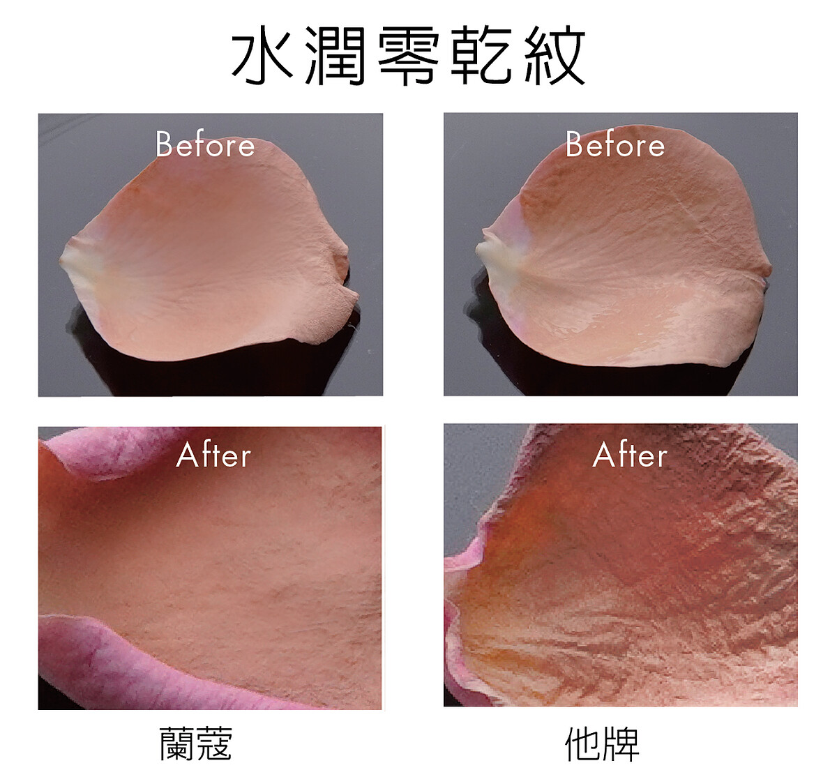 另一項許多人擔心的持久粉底會顯乾的問題,蘭蔻直接取嬌弱的玫瑰花瓣實驗,將粉底直接塗抹在花瓣上,靜置一整天後超持久粉底的花瓣上看不到一絲皺褶,這,未免也太神了吧!妳說說,又控油又水潤,這種粉底能不愛嗎?