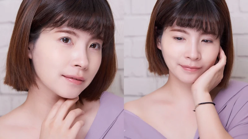 透過前後對照圖就可以看出來,使用前的肌膚黯淡無光澤,看起來乾乾的沒彈性,但使用一陣子後肌膚呈現明亮光澤,肌膚保水度增加,斑點等瑕疵也變得不明顯,光看就很Q彈,摸起來更是細緻。
