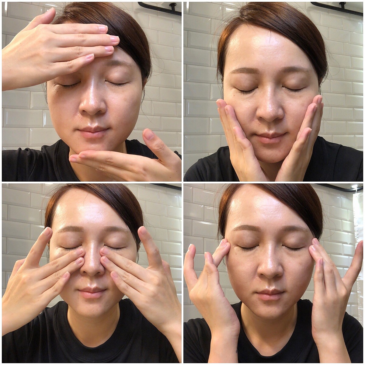 接著以手心的溫度,上下左右加以按摩2-3分鐘,直到水凝膠被肌膚吸收為止。