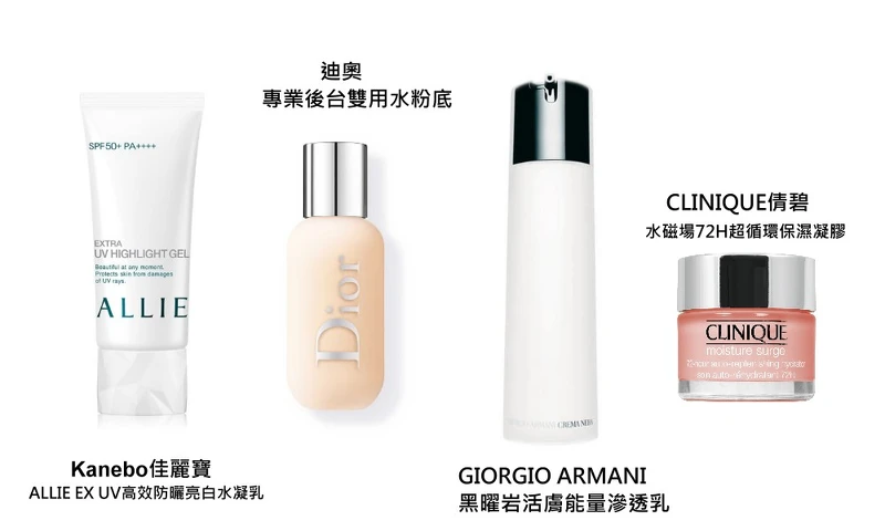 另外像是此次入選的「Kanebo Allie Ex Uv 高效防曬亮白水凝乳SPF50+/PA++++」,我本身屬敏感混合性肌膚,容易出油,所以非常害怕黏膩的產品!這款防曬超清爽,好推不黏膩!防曬力超強,去屏東墾丁、澎湖完全沒曬黑,連腳背上都擦了!同行的友人第二天就曬傷,回家後一週還有脫不下來的夾腳拖,如影隨形!直說下次也要買這款來用呢!「Dior 專業後台雙用水粉底」是全球網美與彩妝師一致推薦的火熱粉底!防水抗汗效果極佳,可以完美持妝一整天唷!「Giorgio Armani‧黑曜岩活膚能量滲透乳」好吸收,水份可以高度滲透肌膚,不會很快就覺得乾燥,可以持續一整天的保濕感,重點是,完全不油膩哦!「Clinique‧水磁場72H超循環保濕凝膠」保濕度強且不粘膩,清潔後保養及妝前保養,一瓶搞定,敏感性膚質也適用,使用後皮膚無負擔感!超喜歡❤