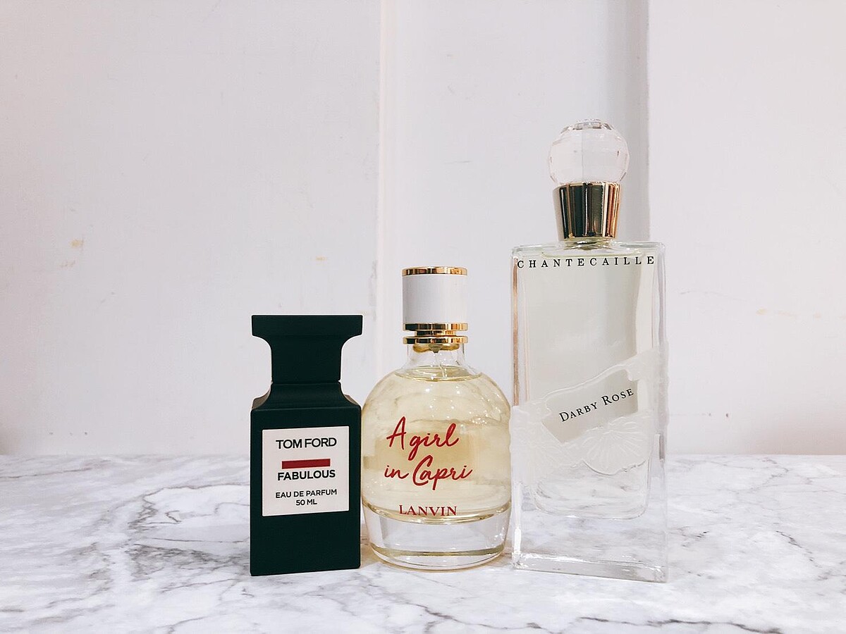 香水也經常是一見鍾情,如 Chantecaille 達比玫瑰淡香精、Tom Ford 私人調香Fucking Fabulous香水、Lanvin 卡布里風情淡香水,主要是辨識性強、能表達自我性格的香氣。
