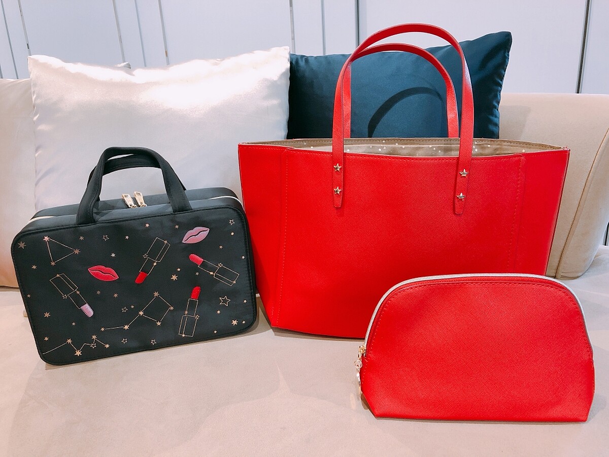 1.第一波「魅惑紅運手提包組」:象徵好運的紅色,大容量好收納、肩背超輕卻耐重的手提包,搭配隨行化妝包,實用性滿分。