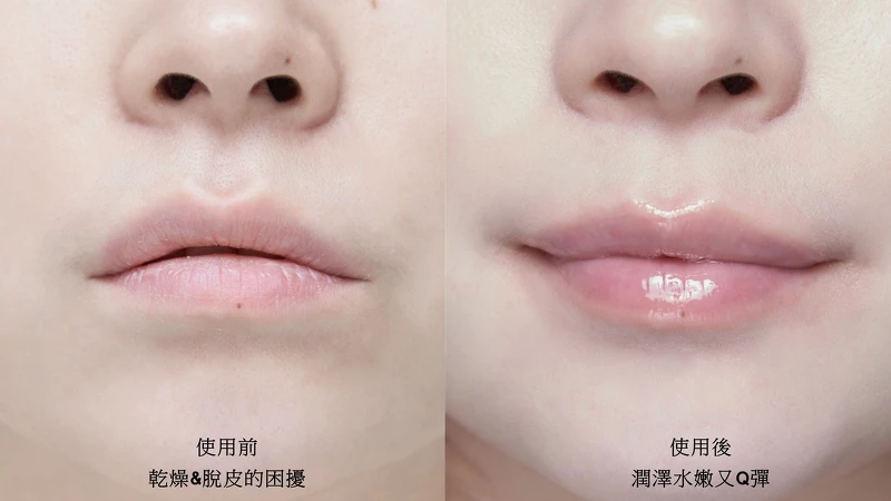 M編的雙唇因為習慣舔唇的關係很顯乾燥,也常有脫皮死皮的困擾。以往使用的護唇產品不夠力,常常晚上抹隔天起來脫皮情況更慘烈,重點是乾巴巴的雙唇,看起來有夠顯老@@