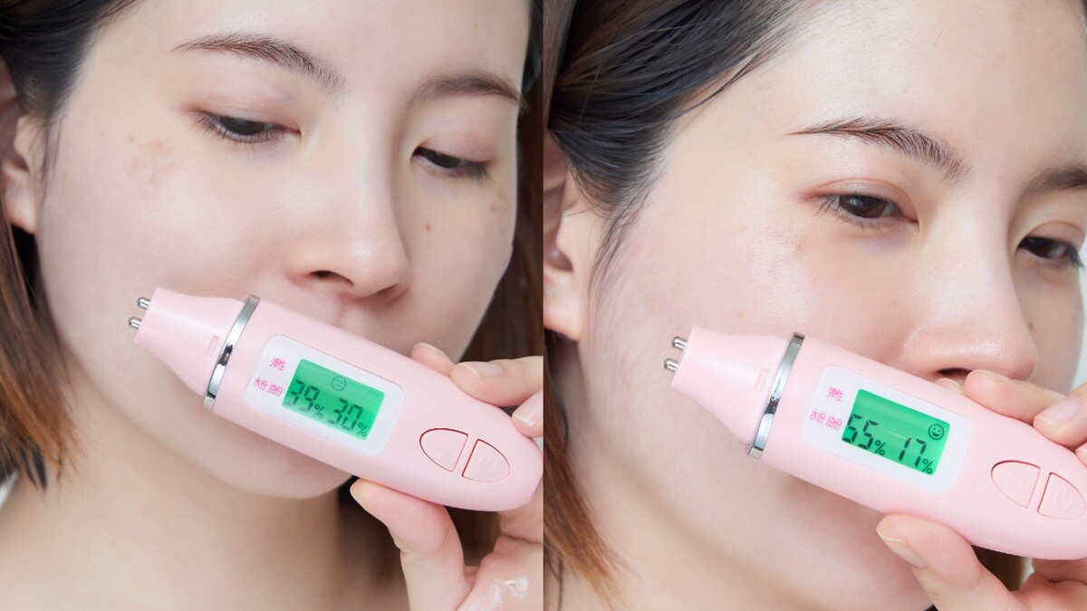 實際用保濕儀測試,水分狂飆不誇張,從39%→55%,保濕效果比面膜還強ㄟ,所以以後是不是連面膜的錢都可以省了?!
