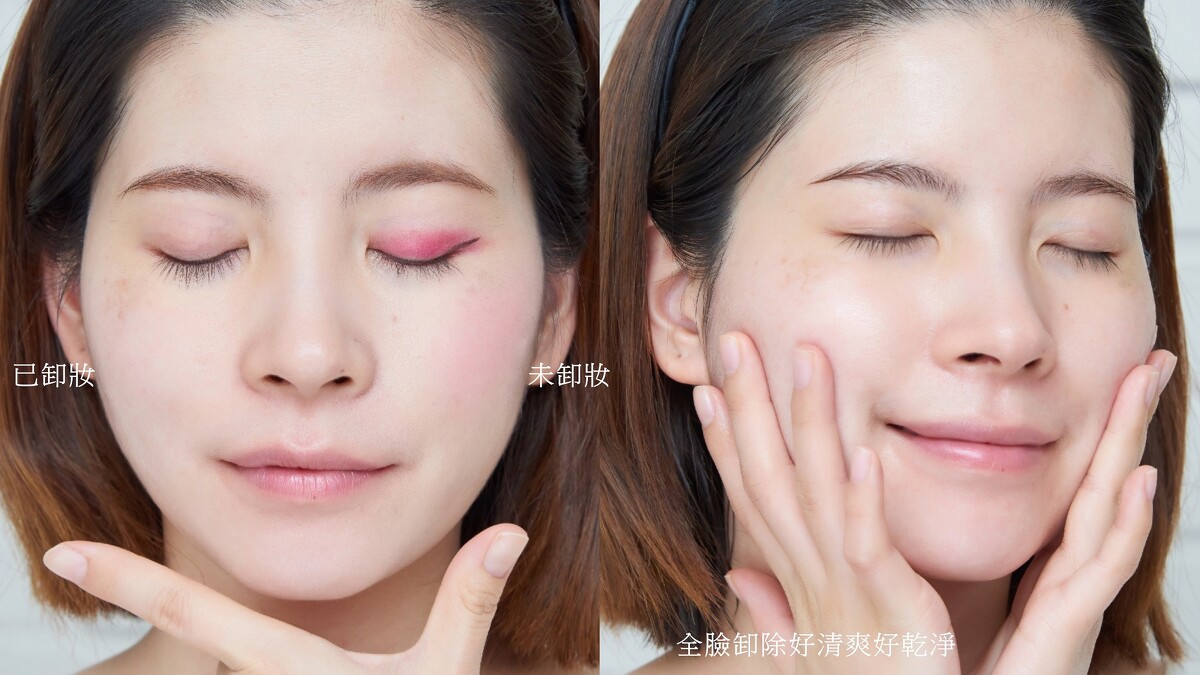 輕輕按摩後,可以發現底妝腮紅等粉質彩妝已經被卸除,但沒想到連重點彩妝:唇膏&眼妝這些都能卸光光,真的是有夠威。洗完也不緊繃不乾澀,難怪是持續回購王。