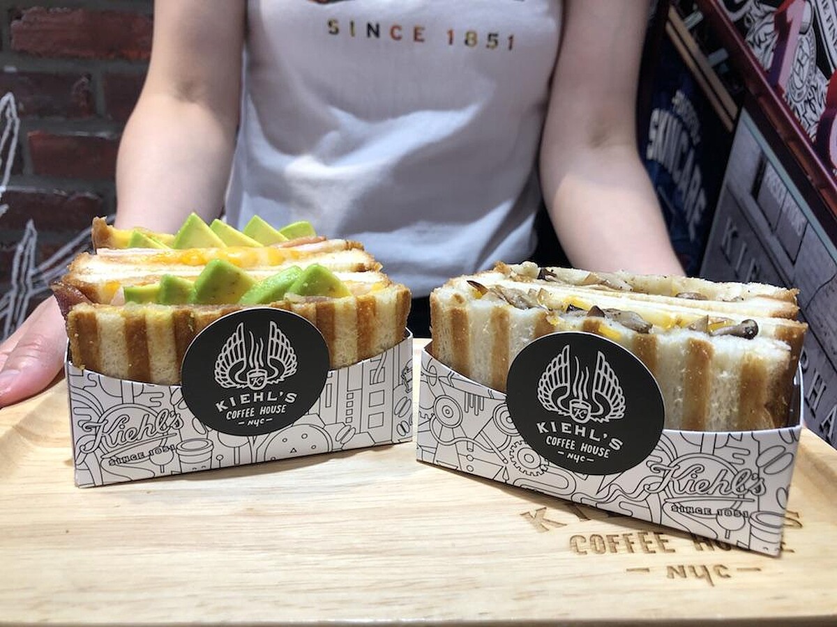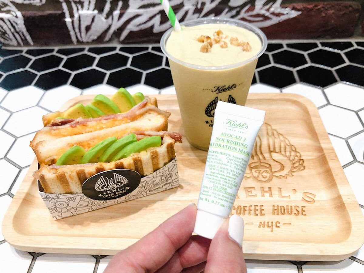 Kiehl's咖啡店首次推出鹹食,其中的「瘋狂培根起士美式三明治」,是以今年甫上市的話題新品「酪梨精萃修護保濕面膜」為靈感設計,內含澎湃切達起司和新鮮酪梨,外層吐司烤得焦香,內層搭配鮮嫩多汁的雙倍培根和鹹香顆粒花生醬,豐富層次讓人吃得飽超滿足。