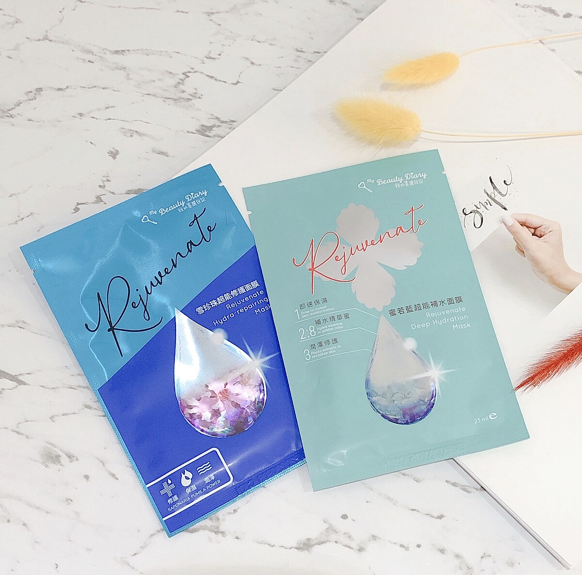 綜觀兩款面膜, 「雪珍珠超能修護面膜」,除了換季和生理期以外,也很適合熬夜的肌膚,全面提升抵抗力;而「蜜若藍超能補水面膜」則適合乾燥肌及妝前補水,強效補水讓妝感更為持久不脫妝。有了這兩款面膜,不用再擔心你的肌膚問題,不管你是哪一種需求,我的美麗日記一敷有解,肌膚日日美麗。