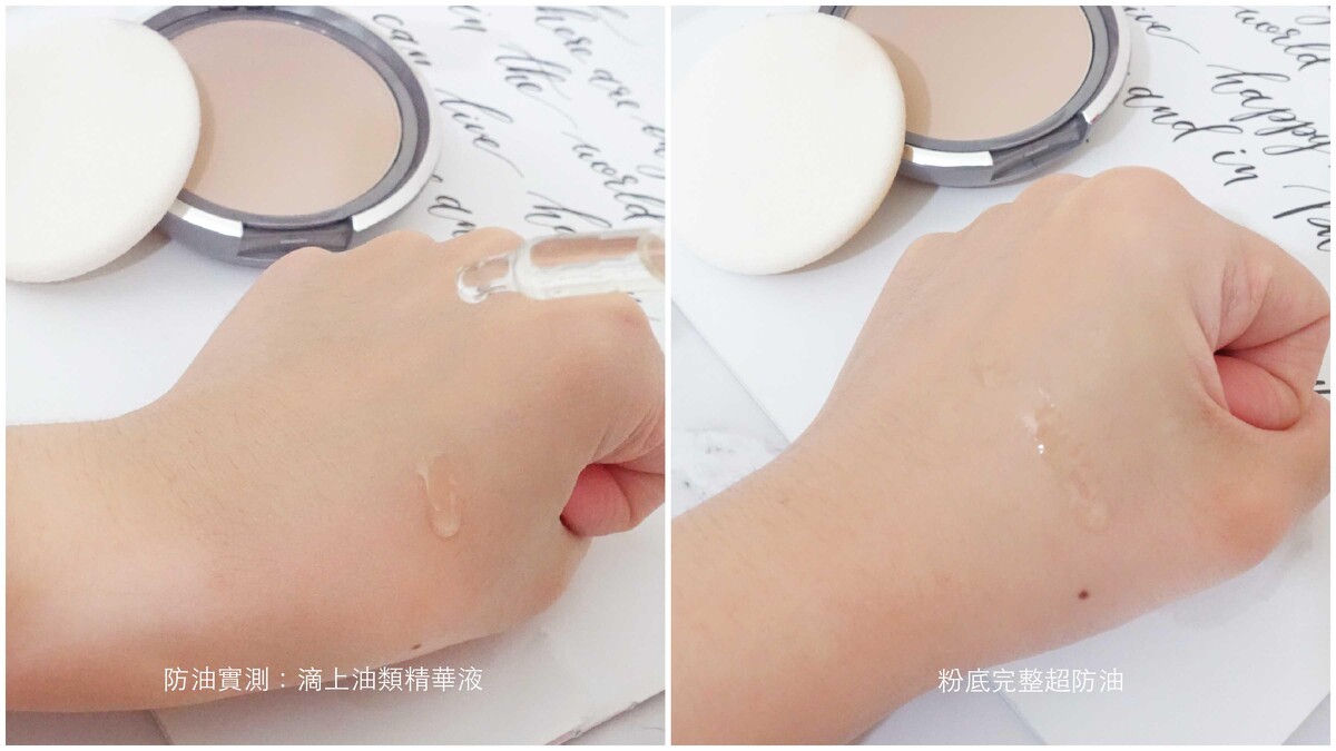 防油實測:滴上一大滴精華油,底妝依然是完美防守不掉妝。經過M編完全可以放心,不管是大哭或爆汗,顏值依然不會離妳而去。
