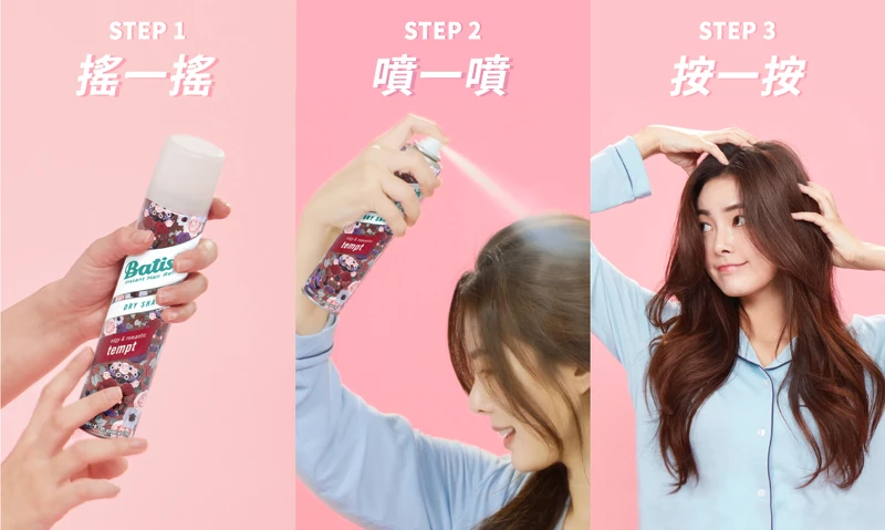 Batiste只要三個步驟:搖、噴、按,就能快速還原秀髮完美的蓬鬆姿態,今年更以最新調香技術打造出兩款花香系列「純沁花語」及「暗戀薔薇」,有著香水般的前、中、後味香調,在增加髮絲輕盈感的同時,讓香氣停留在髮絲中,並能長時間散發出迷人魅力,不論是在什麼情況下使用,都能以專屬的魅力花香征服各種場合,打造出零距離好感的秘密武器!