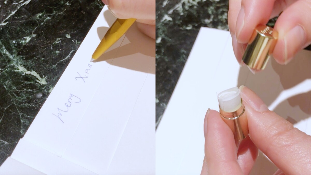 現在透過diptyque的秘密膠囊,可以先在一張小紙條上寫下留言,然後藏進金色的秘密膠囊中,再藏進香氛蠟燭裡,無論是聖誕祝福、告白心意、對自己的祈願,都將在蠟燭點燃的瞬間許願成功。