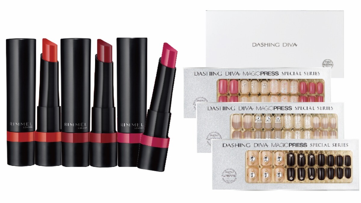 參考商品:Rimmel極致柔霧緞光唇膏、Dashing Diva施華洛世奇聯名禮盒組