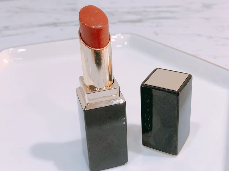 超美的柿子色一眼就擄獲我的心,實際上擦起來也真的很適合秋冬的氛圍,加上是水潤質地,就算乾冷時擦,也完全不怕嘴唇太乾或出現死皮。