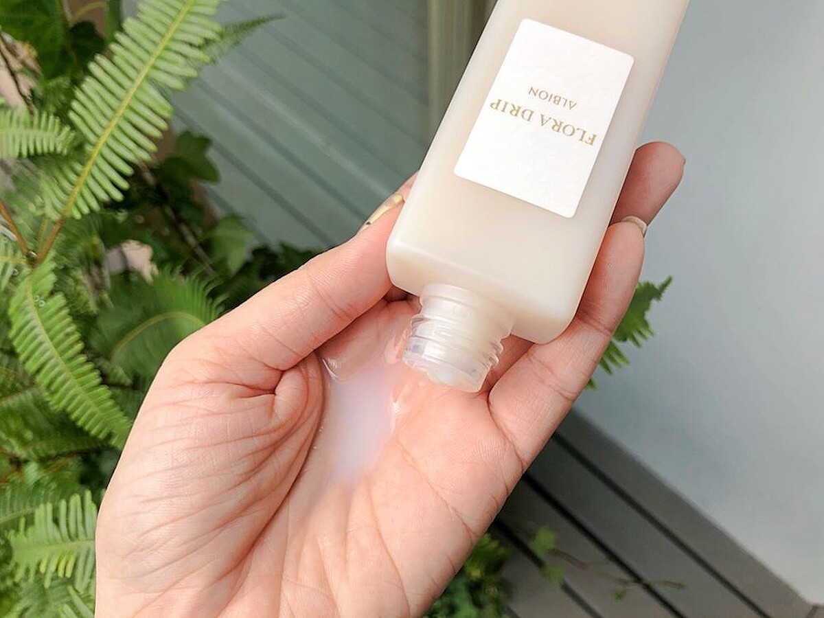 很喜歡它水乳狀的質地,我會搭配Albion的化妝棉濕敷特別乾燥的兩頰,氣味清新療癒,使用完的隔天早上滿有感的,保濕度夠且肌膚有比較明亮。還有(很膚淺的)超級喜歡外瓶設計,是米白加金色,十分文青感,擺在梳妝台很加分。