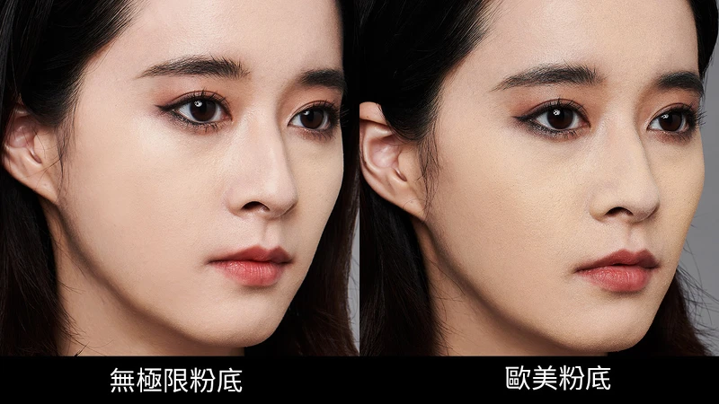 有亞洲底妝專家「無極限粉底」相助,專業彩妝師Ray & Stanley妝感薄透完美又持久,徹底擊敗歐美模特兒厚粉臉!