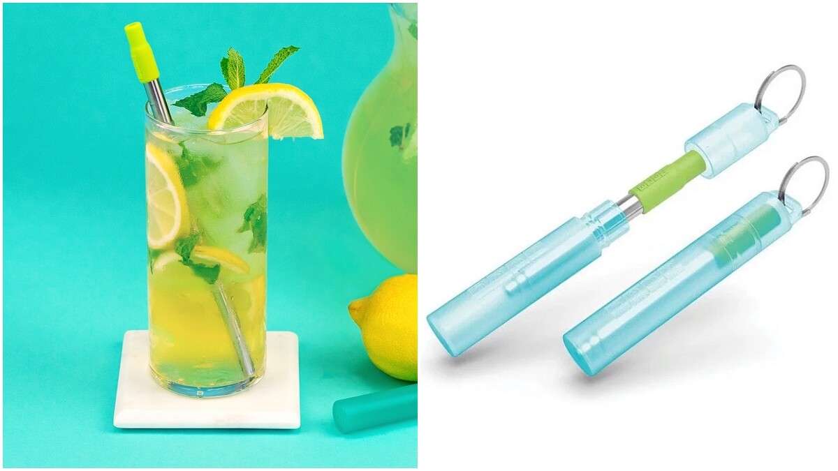 Top 3.ZOKU伸縮式不鏽鋼吸管附收納盒(青草綠/莓果粉/寶石灰)