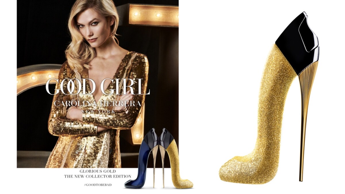 Carolina Herrera GOOD GIRL女性淡香精系列,最引人注意的就是長達5吋的經典高跟鞋造型瓶身,「耀金限量版」靈感取自20世紀初的裝飾藝術運動,以充滿閃耀的金粉包覆瓶身,與纖細螺紋金色細腳鞋跟結合。香氣上,前味運用杏仁及咖啡的香氣,搭配沙巴茉莉和晚香玉的花香,展現出女性特徵的兩面性,最後以神秘深邃的可可,加上烘烤過的零陵香豆形成對比,完美詮釋現代女人的成熟嫵媚和完美無缺。