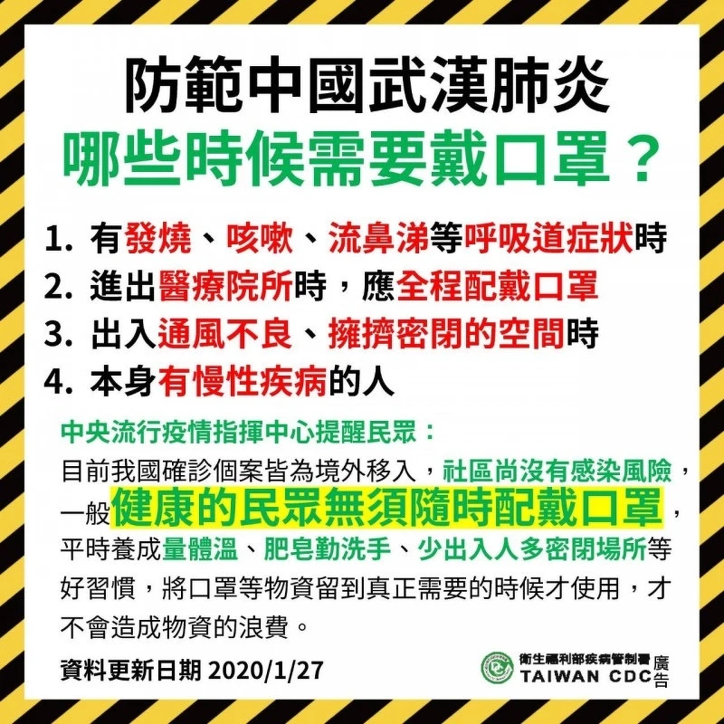 今年1月27日,疾管局也發布「哪些時候需要戴口罩」?