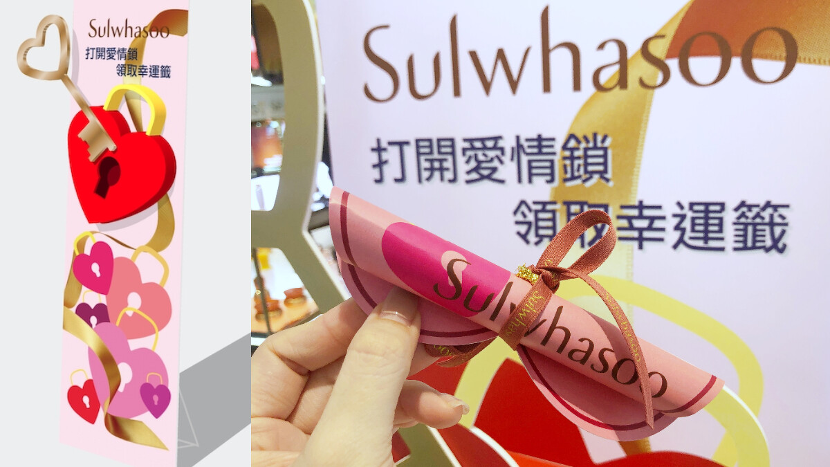 活動機制:於雪花秀櫃上打開愛情鎖領取專屬幸運籤詩,即有機會獲得雪花秀頂級保養服務。