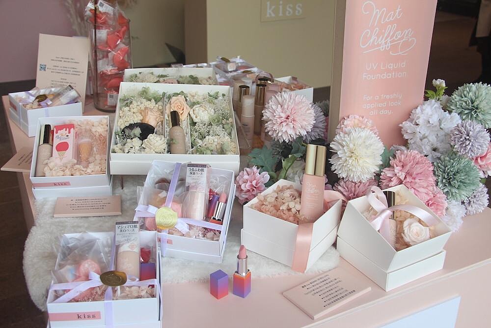日本彩妝品牌kiss在情人節集結專櫃女鞋Annalee、猿田彥咖啡、LSY林三益專業刷具與時尚花藝Upandcoming花狂·狂花美術館等品牌組成自愛OO-IAN(奧援)團,於情人節期間2/11(二)~3/15(日),在誠品南西店1F,展開「大女孩戀愛系kiss美.術館」快閃活動。