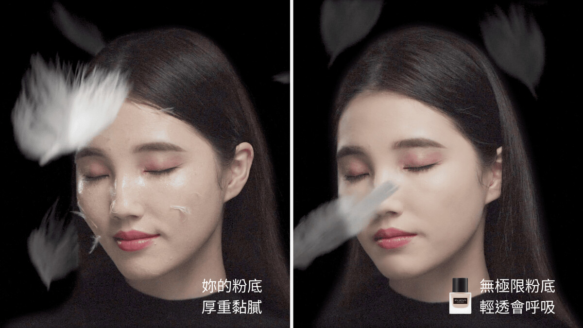 遮瑕力好的粉底通常很厚重,為了達成遮瑕與輕透兼具的願望,無極限粉底透過超透氣科技,粉體一接觸肌膚的瞬間就轉化為乾爽的薄紗質地,就連非常容易沾附在肌膚上的羽毛,也完全不沾黏,其實也已經是比原生肌膚還要清爽的程度!就算天下降下再多羽毛,無極限粉底也沒在怕,因為它就是這麼輕透自然!