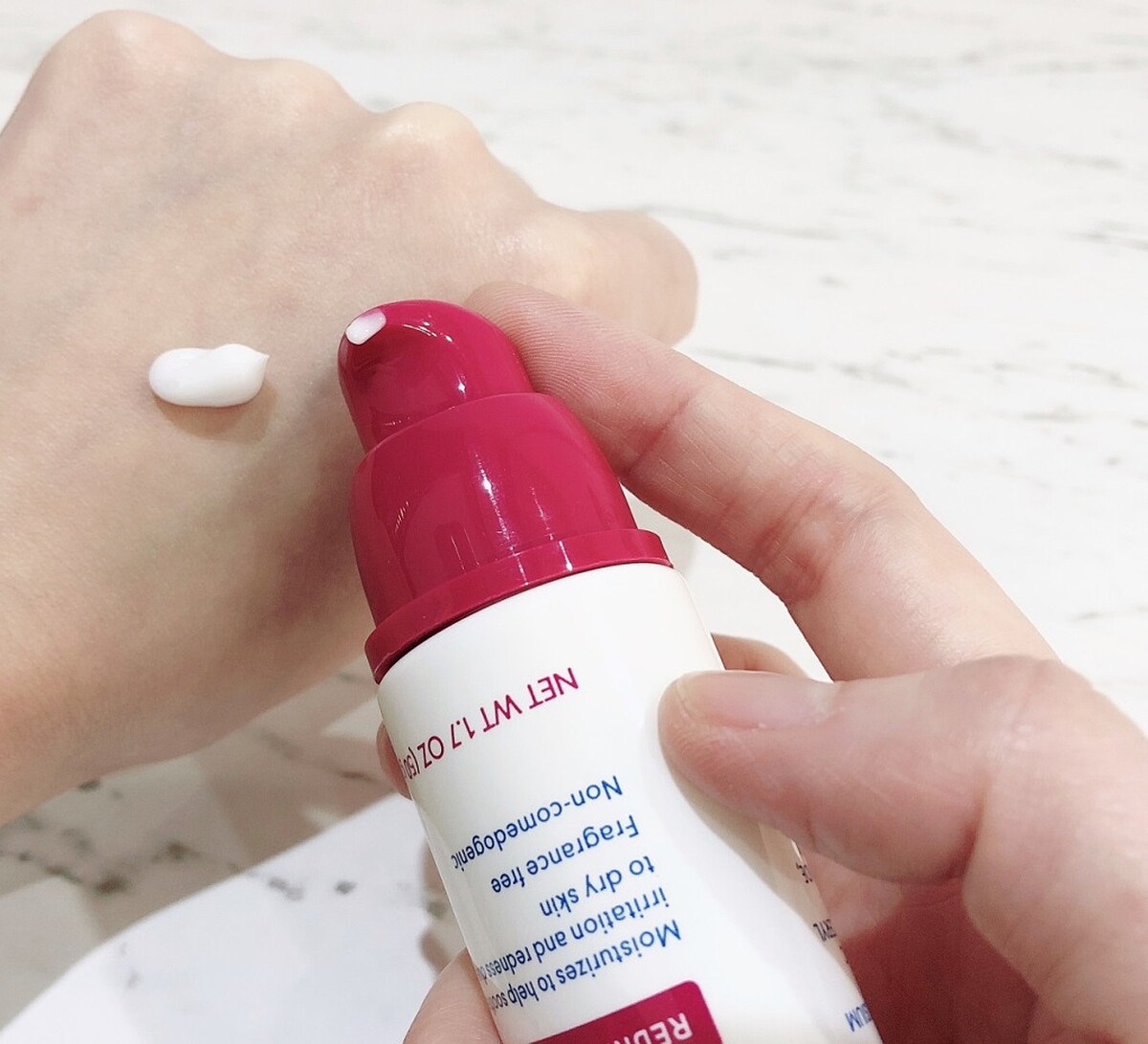 而「舒特膚Redness加強舒敏修護霜」,經臨床證實能24小時保濕,童麗娜醫師也大讚舒適的質地任何膚質都能用,不僅給予肌膚剛剛好的潤澤感,也能修護受損的角質層。也適合雷射術後或是外用抗蟎藥物治療輔助使用,持續修護肌膚。童麗娜醫師也分享小Tip:搭配藥膏一起塗抹,更能減少肌膚的刺激不適感喔。