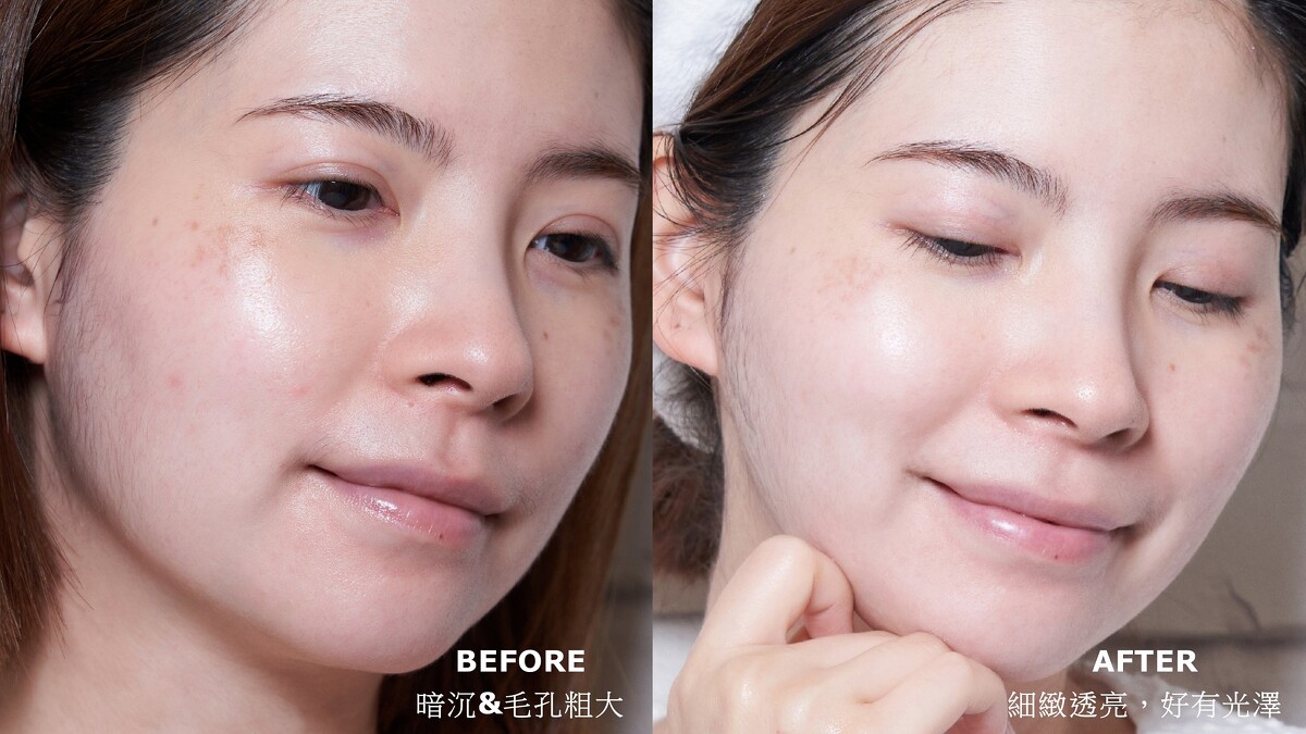 不得不說掃除暗沉超有感,肌膚看起來透亮又細緻,連毛孔都變得不明顯了,摸起來好滑嫩,整張臉容光煥發,自帶仙女光阿。