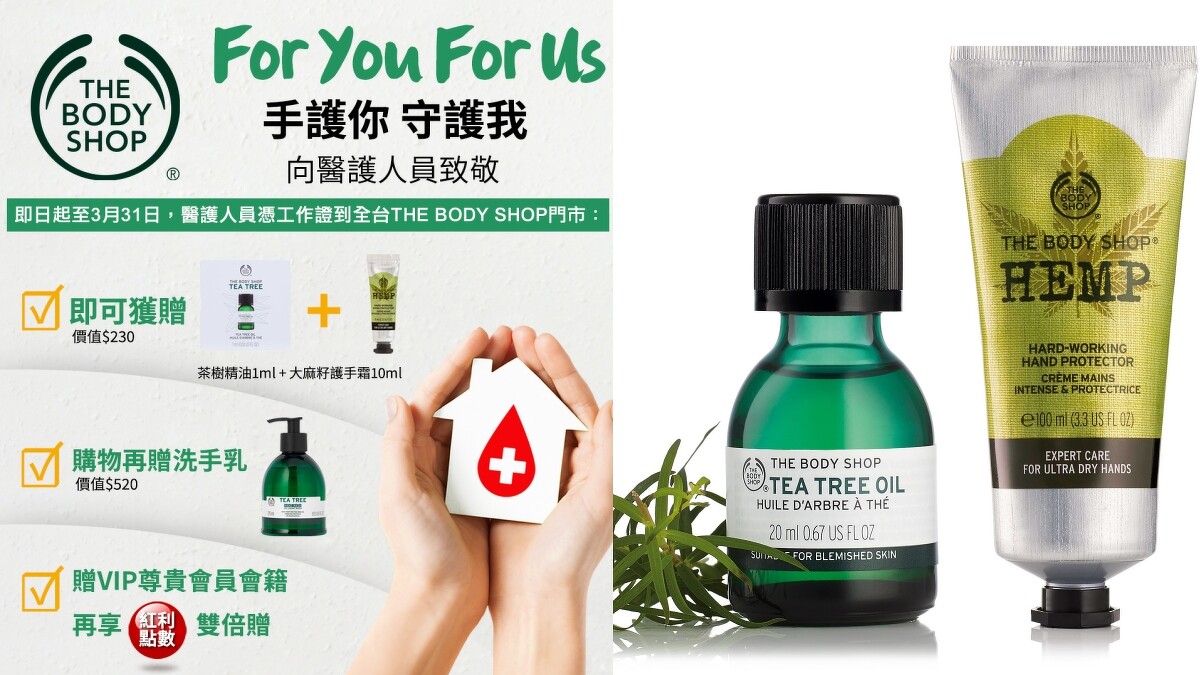 活動內容:醫護人員憑工作證到全台THE BODY SHOP門市