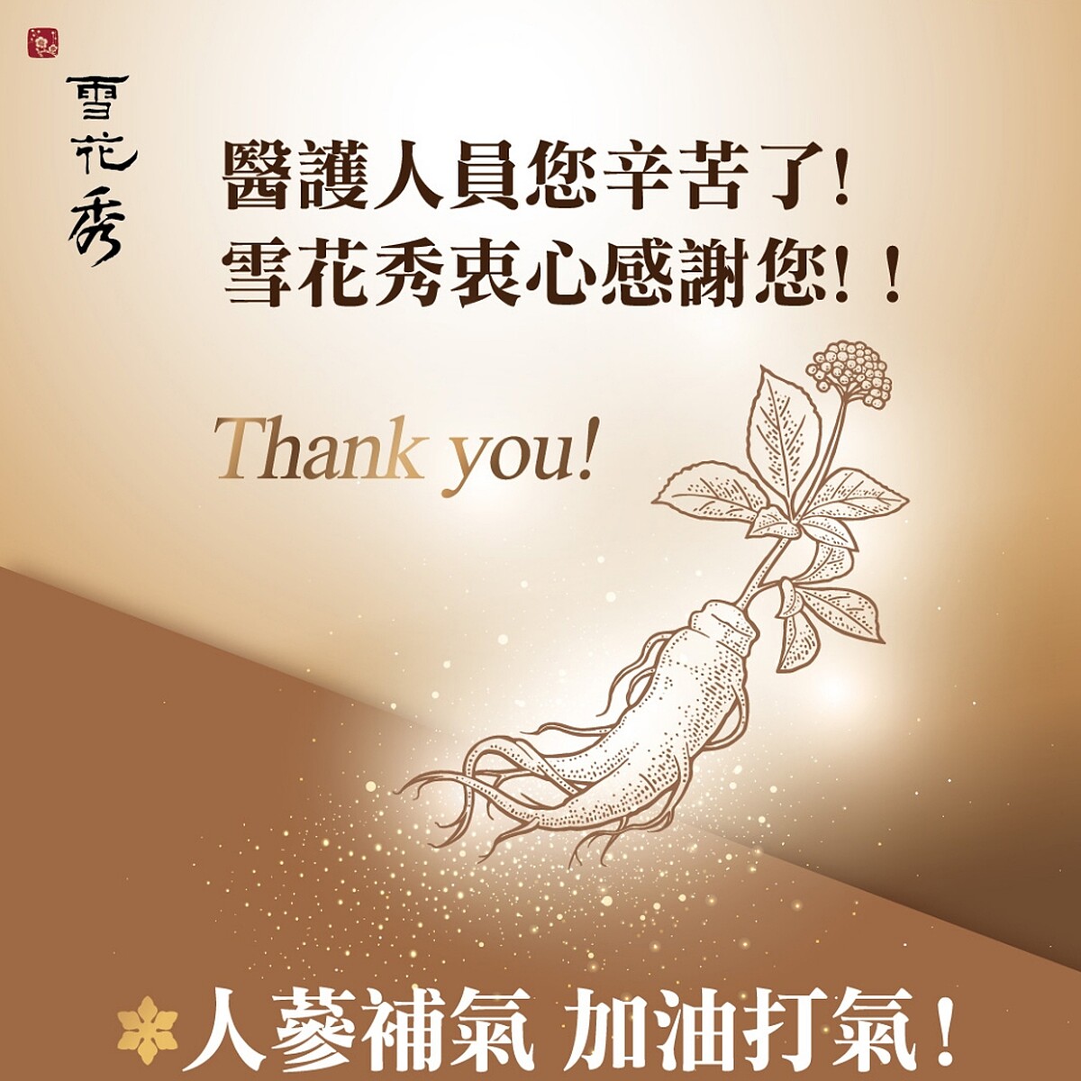 1.雪花秀補氣加油感謝禮:凡醫事從業人員提供相關工作證至全台雪花秀專櫃,即致贈補氣加油感謝禮乙份(贈完為止)。