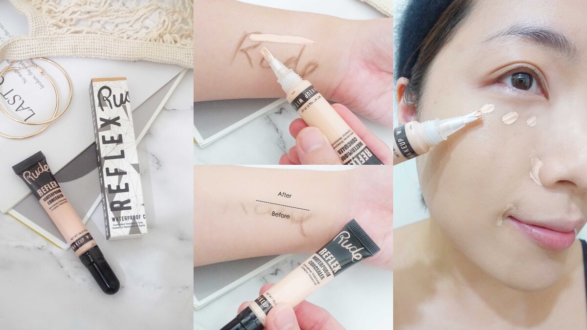 上完底妝後,針對有嚴重淚溝、痘疤,可以再用「Rude甜蜜特務無痕遮瑕蜜」來修飾,或是肌膚很好不想上底妝,只想要修飾臉上瑕疵時。高延展的質地,塗抹開來超輕薄自然,同時兼具防水功效,不管流的是汗水、淚水還是雨水,依然緊緊覆蓋斑點瑕疵不露痕跡。