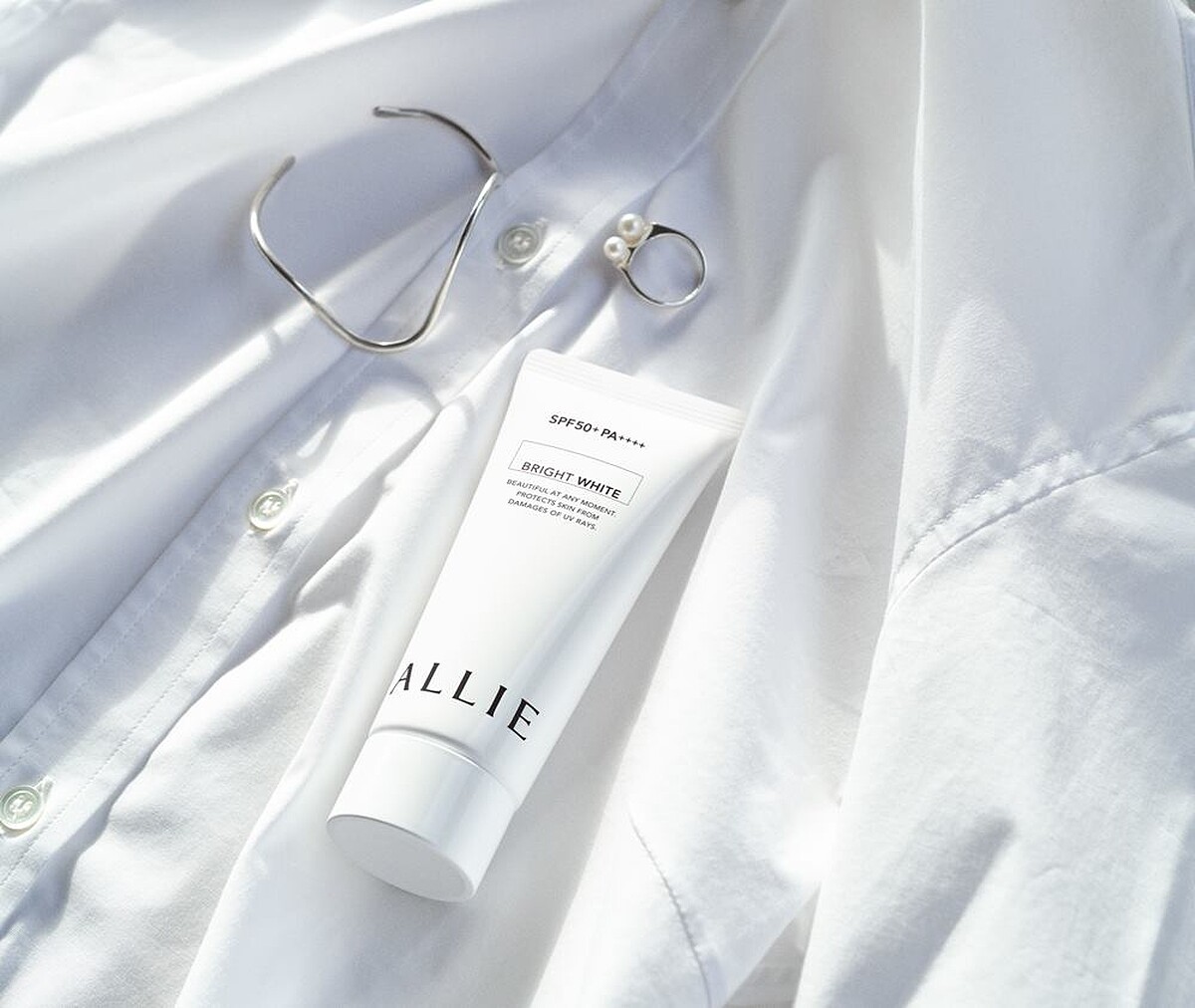 陽光開始露臉的夏天即將來到,肌膚永遠白皙的袁艾菲說自己也很重視防曬,ALLIE特別為女生日常推出的燦爛光澤肌UV防曬水凝乳,加入細緻的珠光粒子可以修飾肌膚,並有三款香調,包含限定款的櫻花香、白桃茉莉香、還有玫瑰香,讓擦防曬的時候可以擺脫過去濃濃的化學味,透過療癒的香氛帶來好心情,更特別的是這款防曬就算是用肩背包包,也不會因為包包不斷摩擦肌膚,倒置防曬力不足,讓一忙起來可能忘記補擦防曬的袁艾菲不用擔心曬黑。
