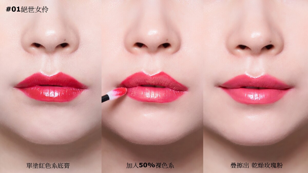 直接來分享人人都能駕馭的 #01絕世女伶,隨心所欲調配出氣勢紅唇&溫柔小姐姐的氣質豆沙粉。