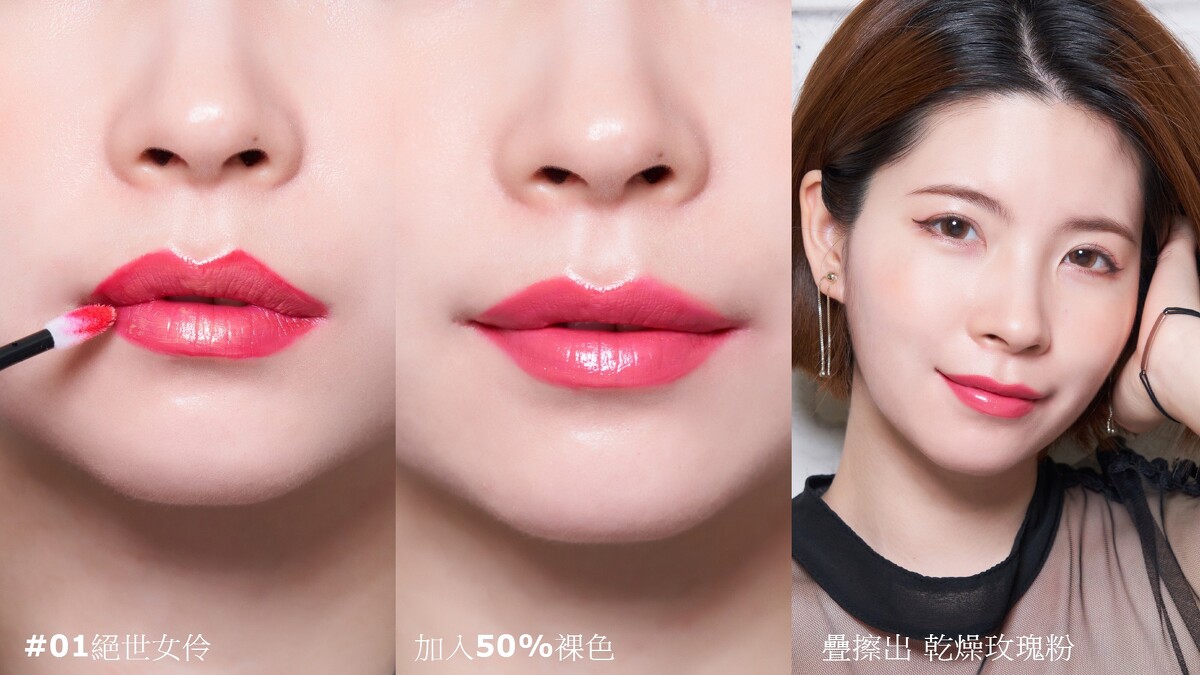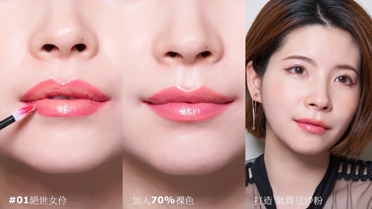 接著依照自己喜好,加入”裸色系”來疊擦出想要的唇色。