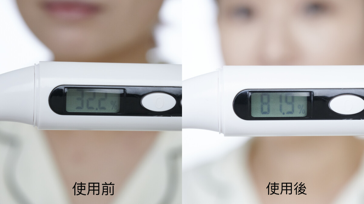 口說無憑,M編直接保濕儀器實測給大家看,原本因為忙碌加上口罩待久肌膚油水失衡的肌膚,敷面膜前的保濕度只有32.2%,敷完未來美POWER8超導微晶面膜後,保濕度直衝81.9%,肌膚充滿彈性,連毛孔都變得很細緻,美肌感太驚人,不推不行,大家快點用起來啊!