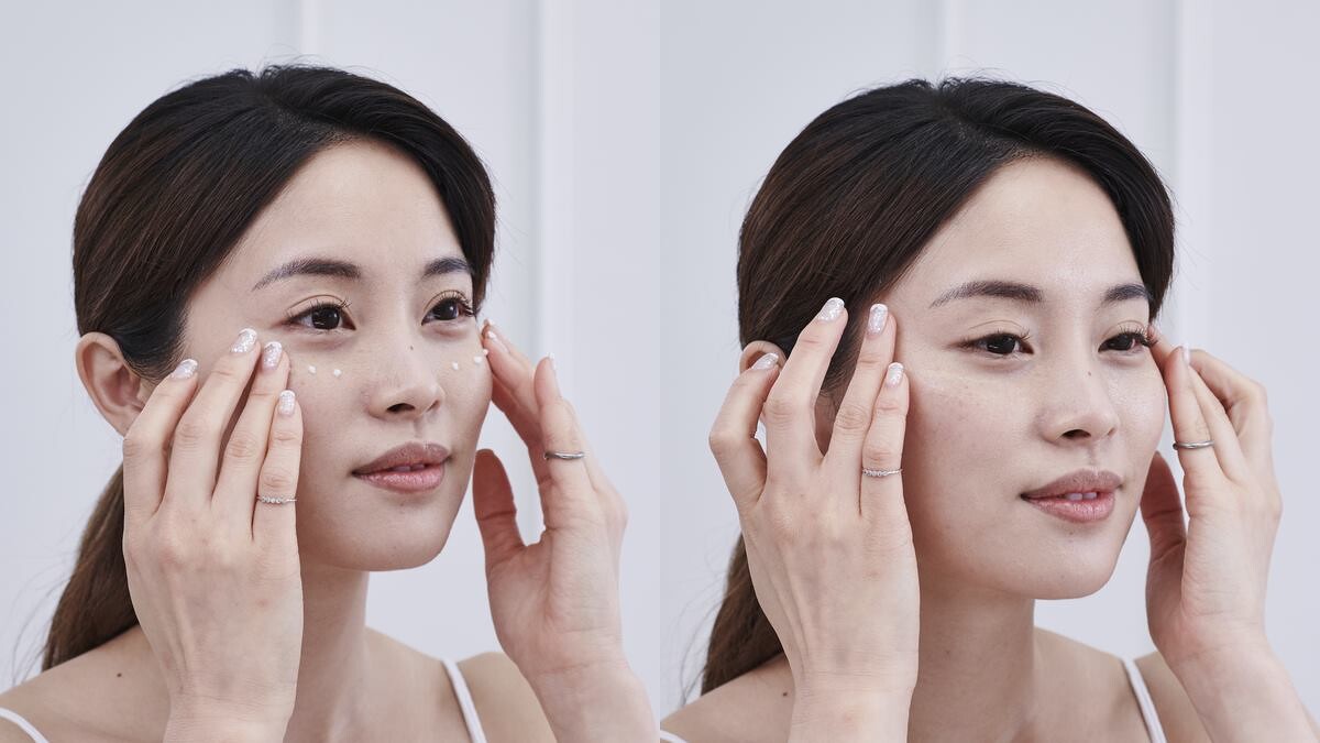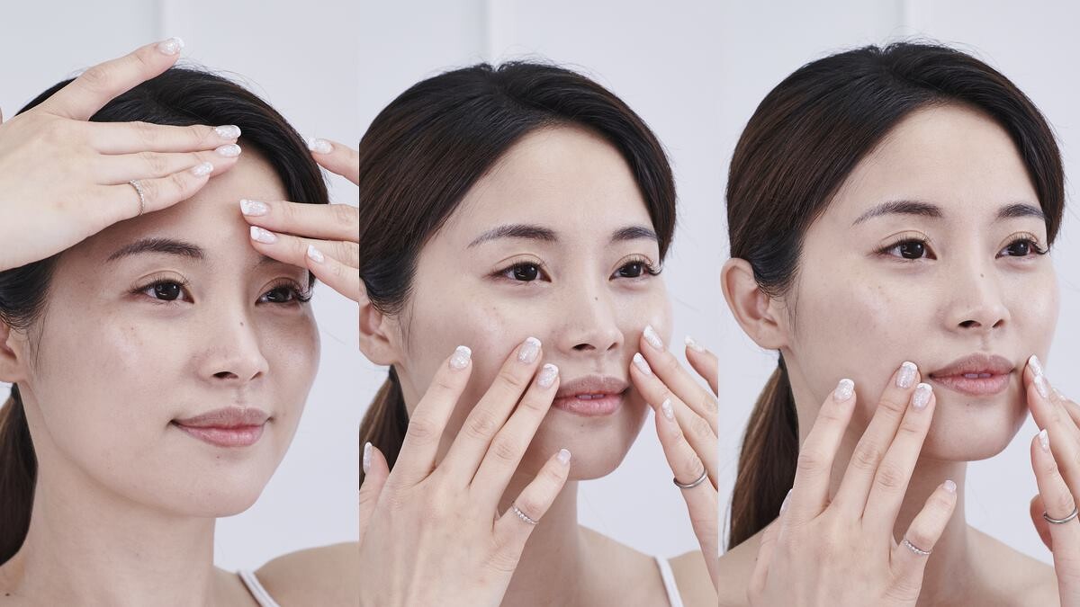 最後同樣用一點點的活膚晶,塗抹於額頭雙手往上輕推,眉心處則可用畫圈的方式加強撫平小細紋,而大家都很在意的法令紋也相當簡單,只要用手指腹法令紋處開始往兩頰推,再從嘴角往上推開,重複三次,不只肌膚細緻,甚至臉部線條也被拉提了呢!