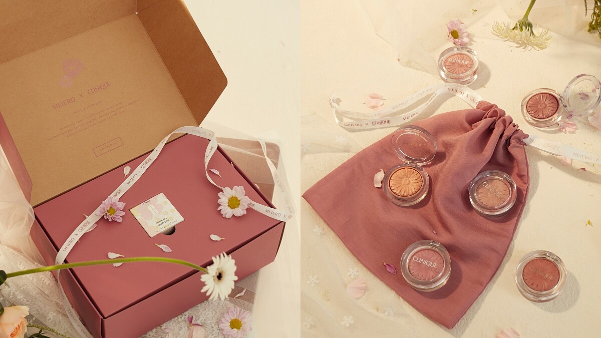 CLINIQUE倩碧2020年6月與網路知性女裝服飾MEIER.Q合作,以熱賣商品「小花腮紅CHEEK POP」為靈感,精選6款人氣腮紅色,如IG熱門討論度最高的打卡色系奶油粉、果實棕等裸色及玫瑰色調,為小資女打造一系列的氣質上班及休閒穿搭。