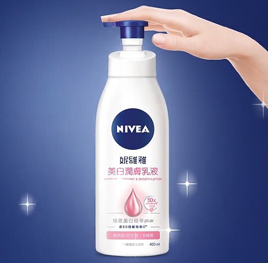 身體美白專家NIVEA大家一定不陌生~這款連續8年熱銷的No.1美白乳液,白得超有感,5天就能跟黑色素掰掰!晚上睡前擦乳液,滿滿的保養儀式感,可以舒緩一天的疲勞~