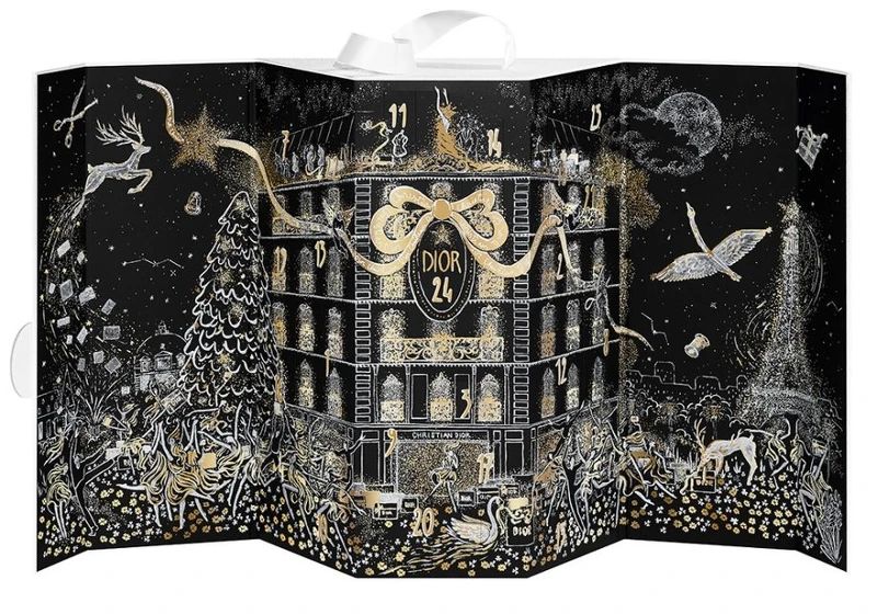 DIOR迪奧今年的聖誕倒數月曆風格讓人眼睛一亮!一改過去的白色風格,今年是黑色搭配金色的插畫,非常華麗又帶有些許魔幻風格。來自法國著名插畫家Safia Ouares的神來之筆,讓童話般的聖誕夜翩然降臨蒙田大道30號。閃耀著熠熠光采的馴鹿,越過巴黎街頭低矮的屋頂,DIOR夢工坊堆滿了聖誕禮盒的門前,上演著一場美妙絕倫的芭蕾,在璀璨星空下繽紛呈現。