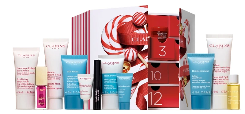 以12天為單位的聖誕倒數月曆,定價藏有巧思,NT2,021象徵著迎接新年,帶給大家滿滿祝福。當中更包含內含兩件正貨商品,一個是月曆中才有、兼具妝前乳與保濕面膜的瞬效美肌亮顏霜,另一個則是克蘭詩必備的明星商品-彈潤植萃美唇油。搭配從去角質、面膜、眼膜、面霜、經典護理油等保養品,是美麗變身的經典選擇。