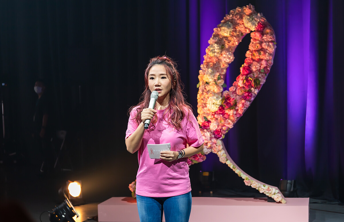 主持人陶晶瑩對於集團每年為乳癌防治所做的貢獻,表示非常榮幸多年來以不同身分與集團攜手為終結乳癌的目標盡一份心力。而擔任此次唯一女歌手的蘇慧倫特別呼籲大家:「乳癌是全球女性罹患的四大癌症之一,不只45-69歲女性要注意,全球乳癌病例有年輕化趨勢,除了每月自我檢查,每年的專業篩檢也很重要,希望大家更愛自己、關心自己的健康。」